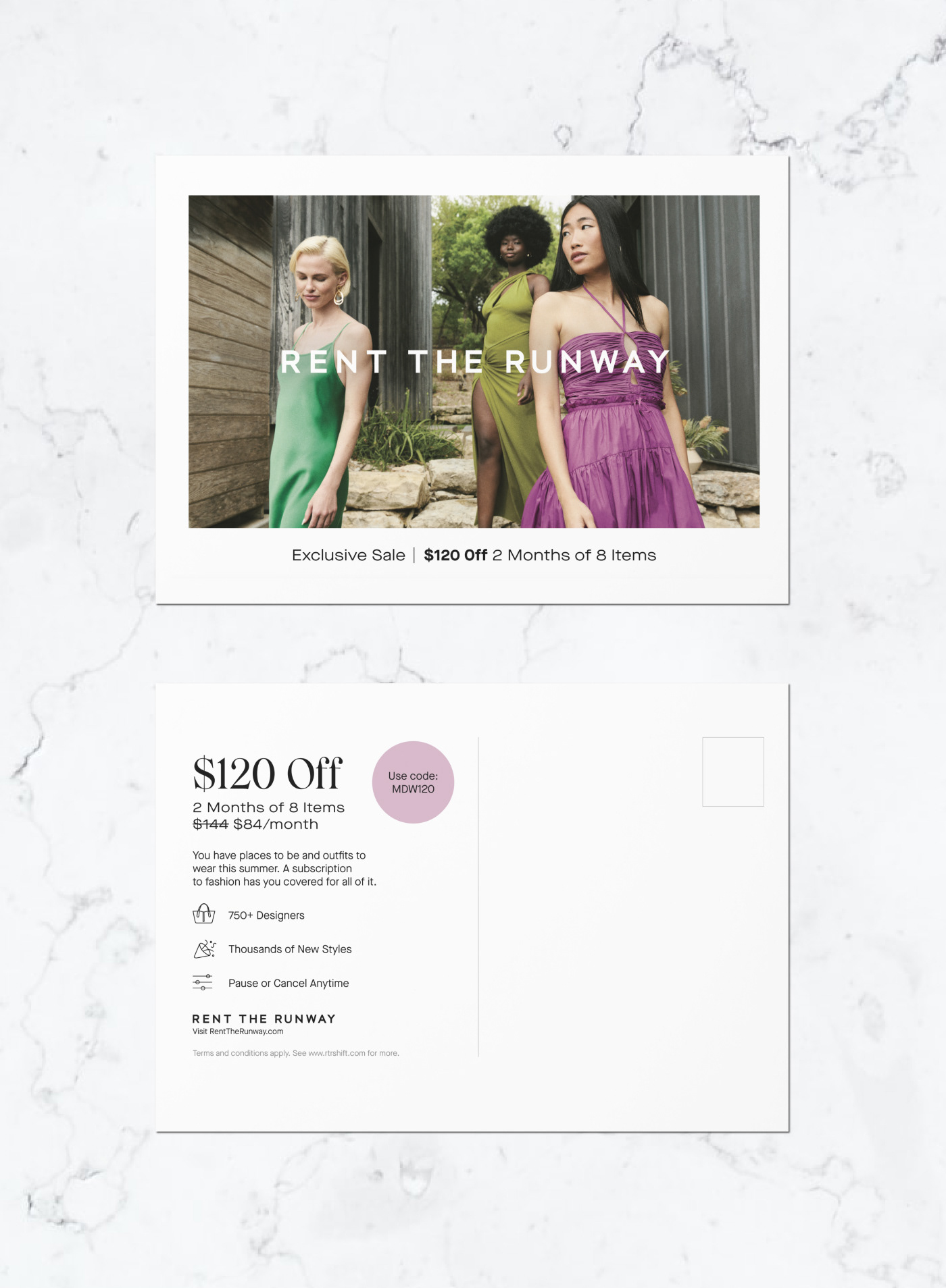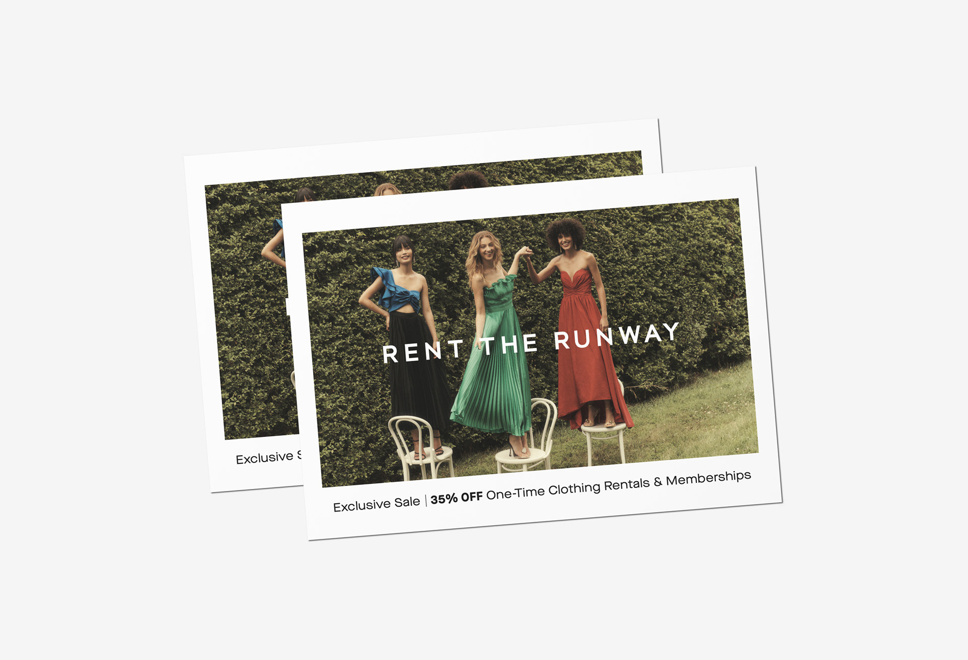 Direct mailers developed for Rent the Runway promotions